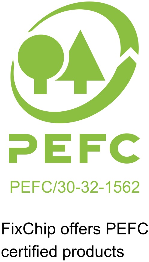 Unsere HDF-Platten stammen ausschließlich aus PEFC- und FSC®-zertifizierten Wäldern, wodurch sichergestellt wird, dass die in unseren FixChips verwendeten Materialien eine verantwortungsvolle Forstwirtschaft und ein langfristiges ökologisches Gleichgewicht unterstützen.